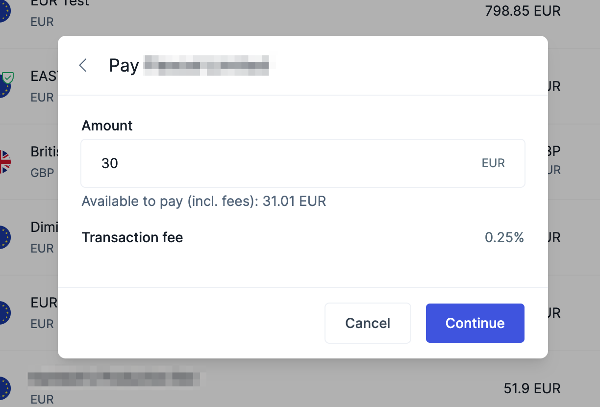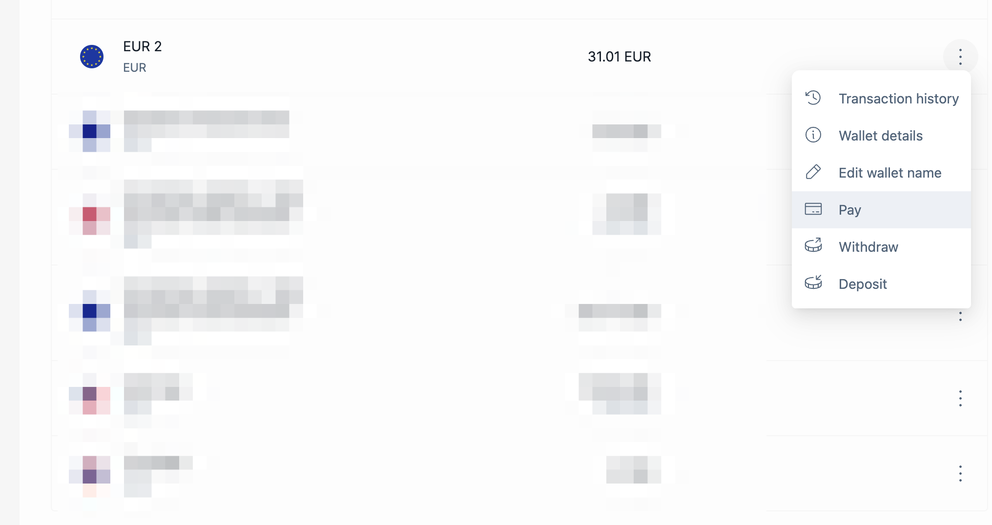 - To execute a transaction, click on the three dots next to a wallet and select the “Pay’ button.