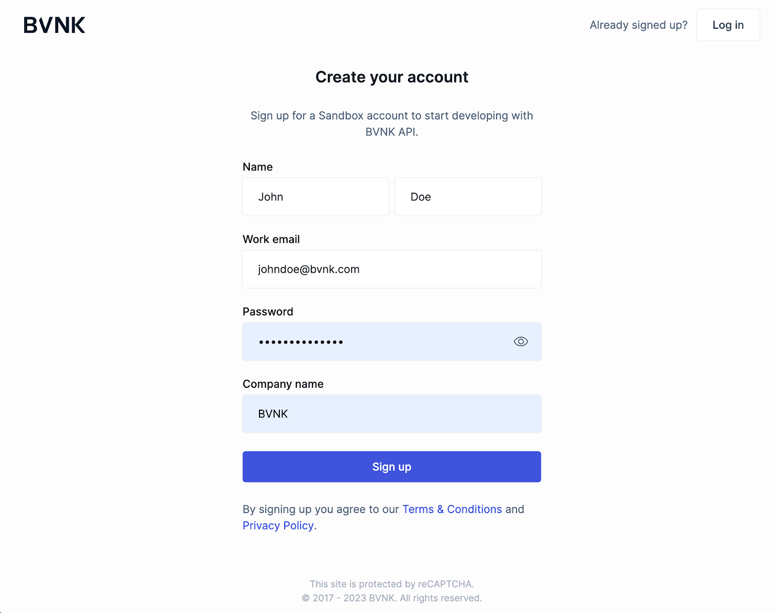 - Create an account in our sandbox environment